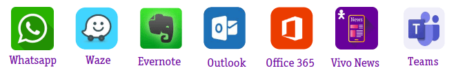 Whatsapp, waze, outlook, office 365, vivo news, teams e evernote.